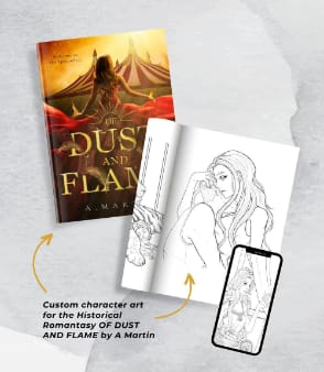 Join my mailing list to receive a custom colouring book from my book, Of Dust and Flame, for free!